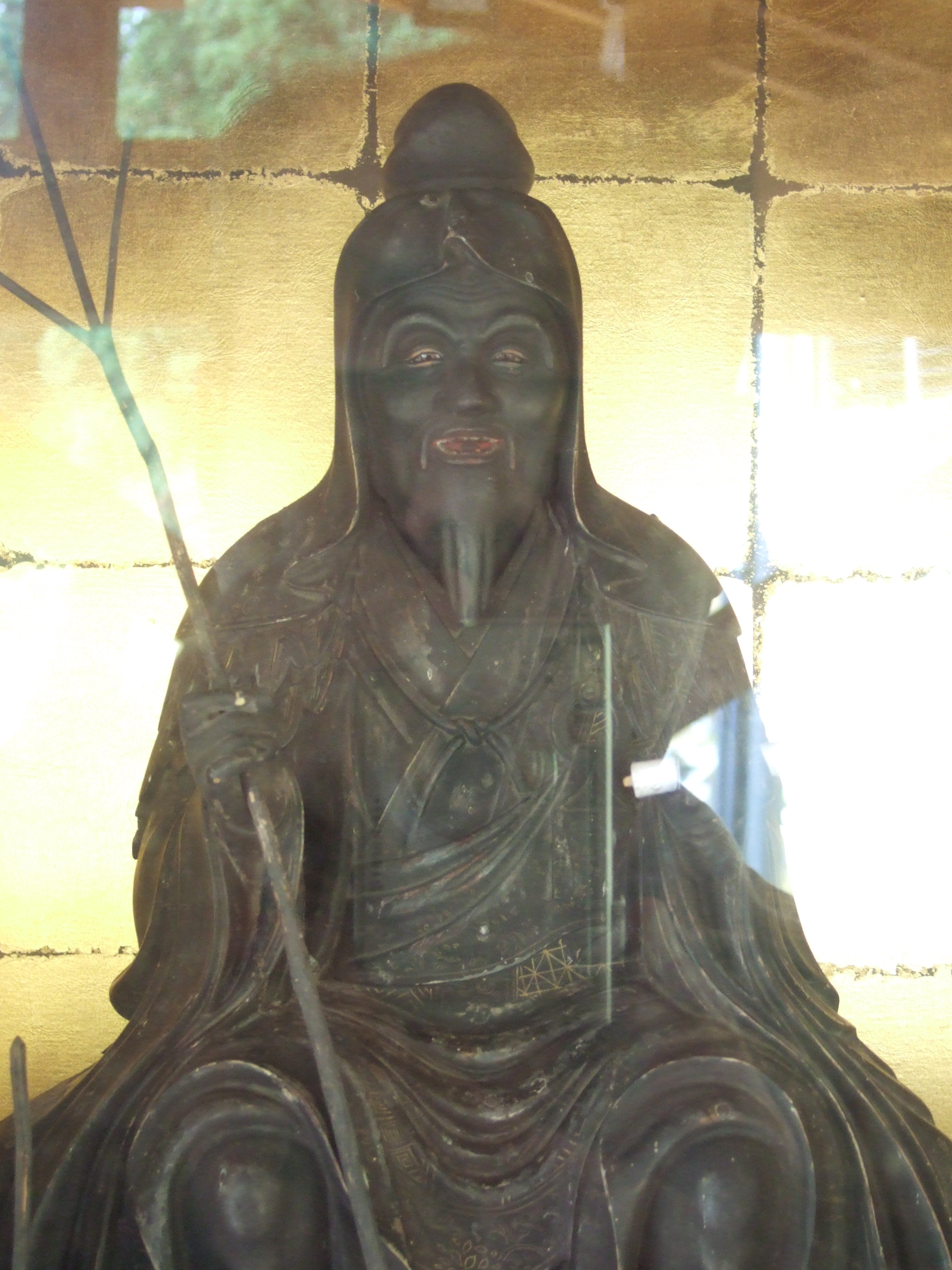 | 平成16年に整備されたようだ。金比羅神社駐車場の右上手のトイレの横の手洗い場に、精緻な役行者、前鬼、後鬼の木像が丁重に祀られていた。 牧谷金比羅堂に祀られていた役行者の木像で、南条町指定文化財第一号である。役行者は右手に木の枝、左手に経巻を持った倚像である。【写真】 小山の上にある金比羅神社は、鍵がかかっていて内部を窺うことができなかった。 南越前町商工観光課でいただいた「南条町文化財めぐり」というパンフレットには、「日野山信仰に関係深い像」と説明が付されていた。 |
